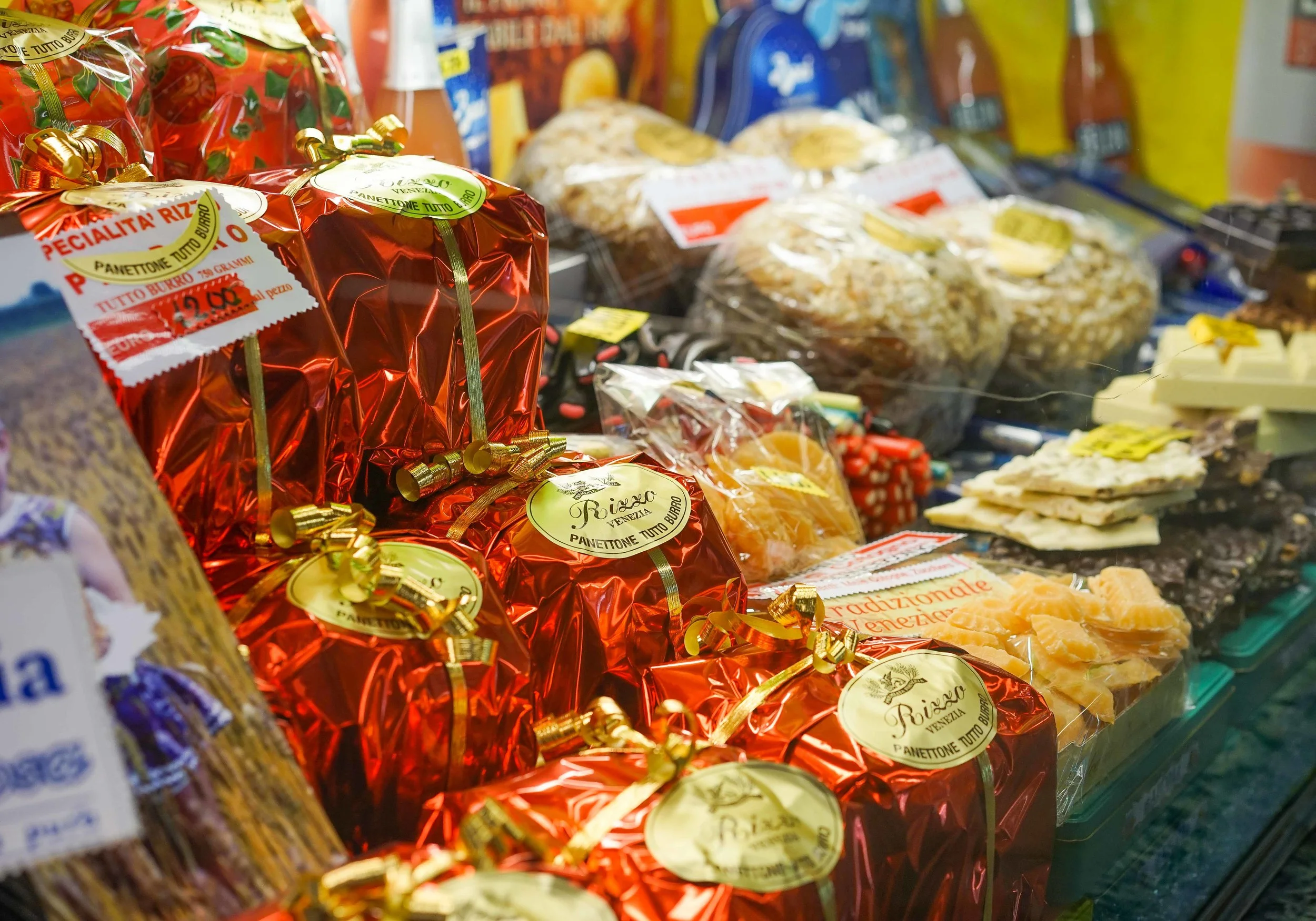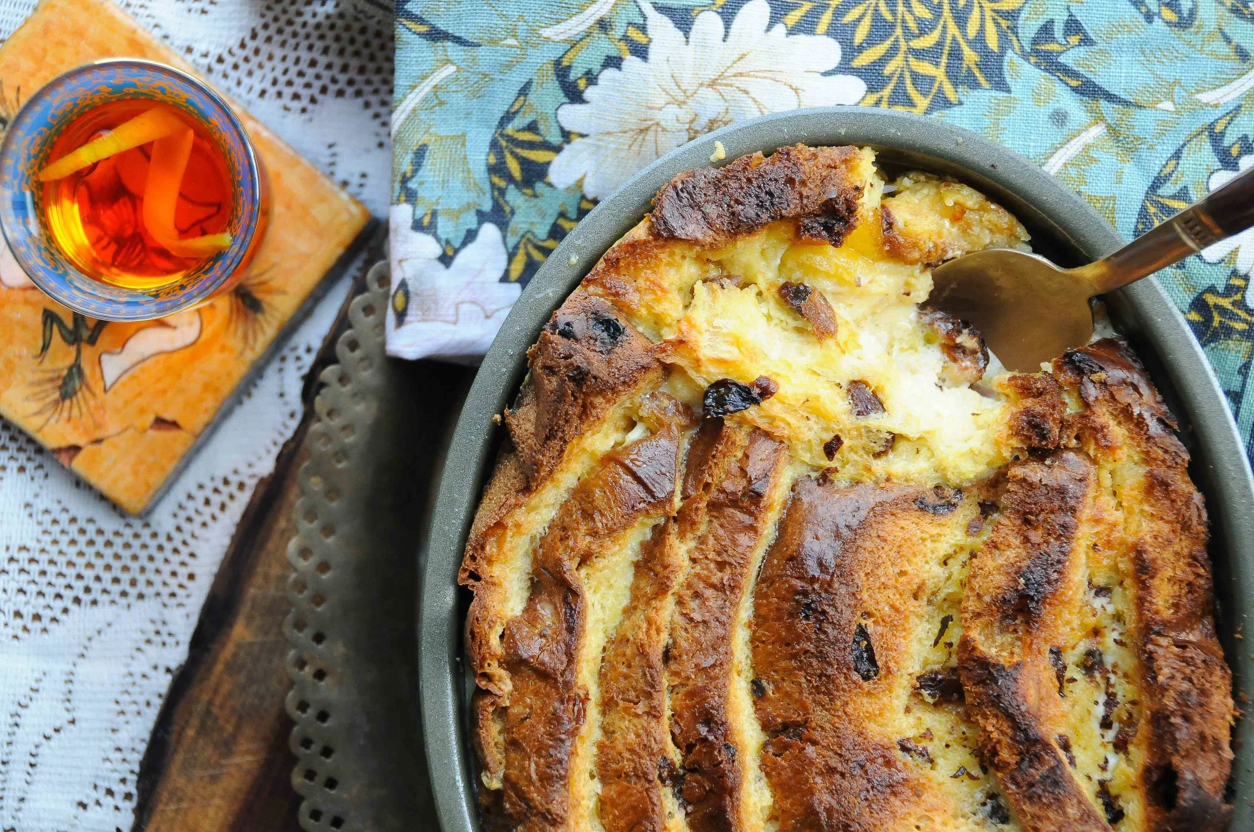 There is never a Christmas panettone shortage in Venice! Entire shop walls are dedicated to its colourful conical boxes, and ceilings hung with more of the same. This bread pudding takes advantage of the surplus. It works especially well with stale panettone, so is prefect for utilising what’s left-over.